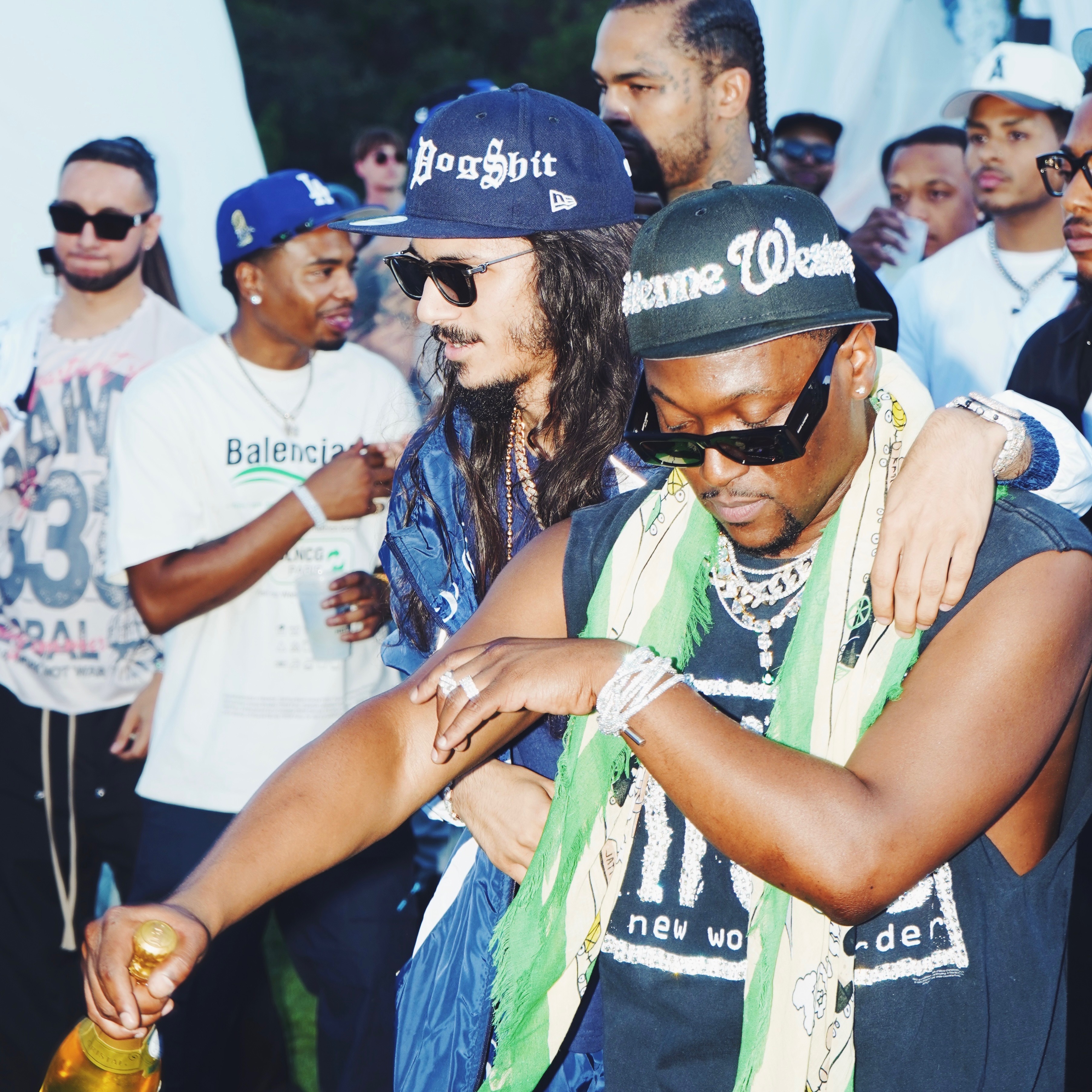 To celebrate, he hosted the “Hit Free” party at a sprawling mansion in Beverly Hills, put on by Hit Boy’s own production company, Surf Club Inc. The guest list, curated by Melissa Harvey, Insidr, and StormX, reflected his reach and reputation, with appearances by 03 Greedo, Dave East, Mario, DJ Hed, and streamers PlaqueBoy Max and N3on. Hit Boy also used the party as the setting for his “Start Dissin’” music video featuring BabyTron, Spank Nitti James, and AZ Chike, all of whom were also in attendance, alongside a heavy roster of DJs. D’usse provided the open bar, and the night quickly became one of the summer’s most talked-about parties.